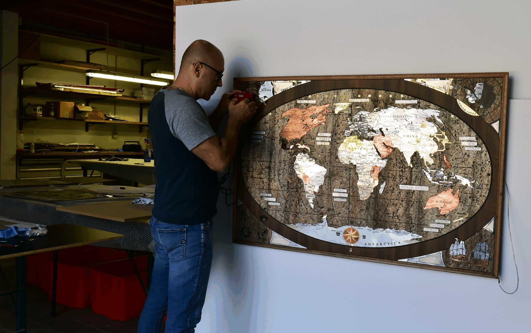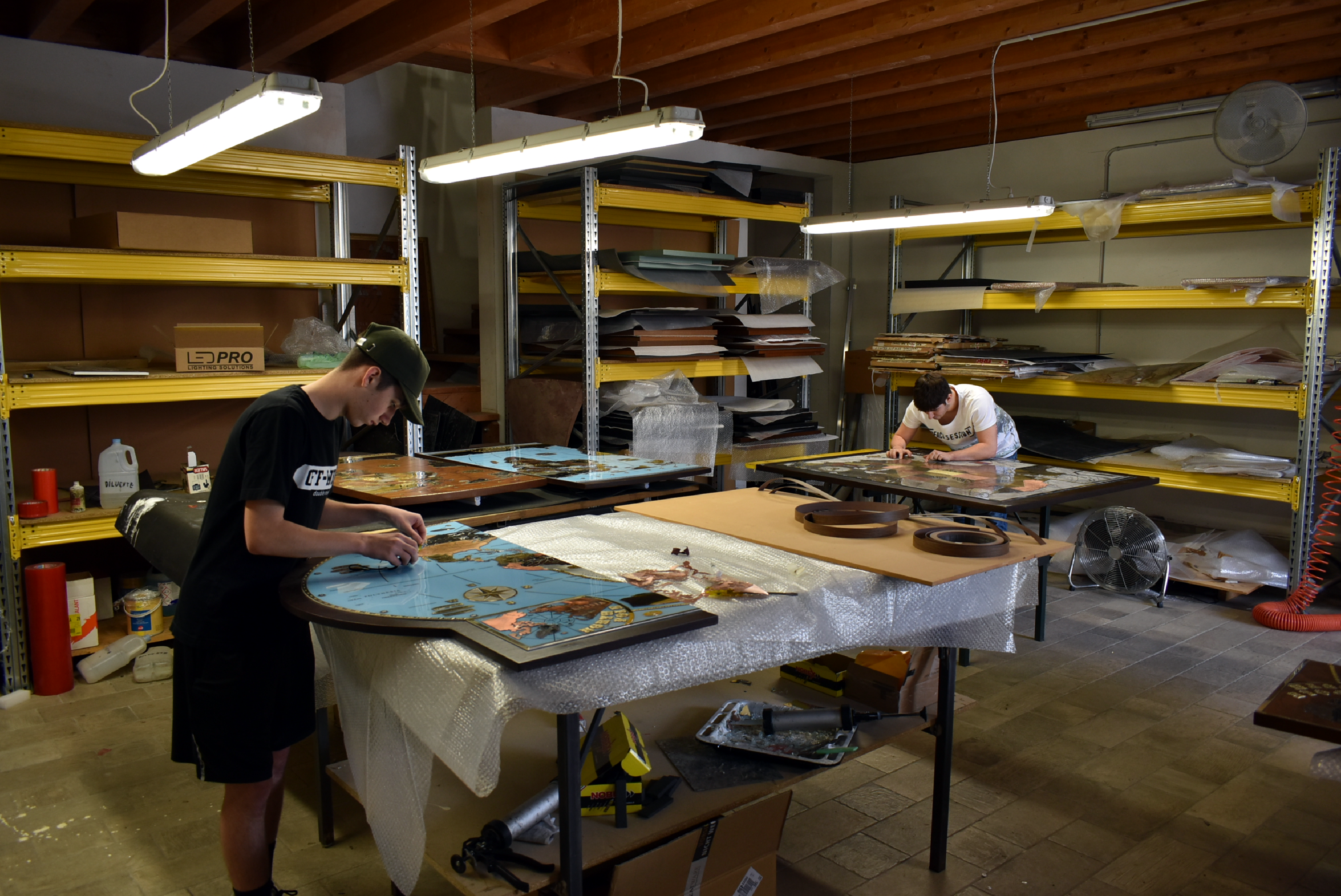 In 2013 in Codogno, a small city south of Milan, Marco, as an expert technician with more than 25 years of experience gained in jewelry technologies and high technological machinery just started his dream. The dream was to be free to use his know-how and creativity just for the pleasure to create decorative metal panels ,wall globes, and artworks out of the box.