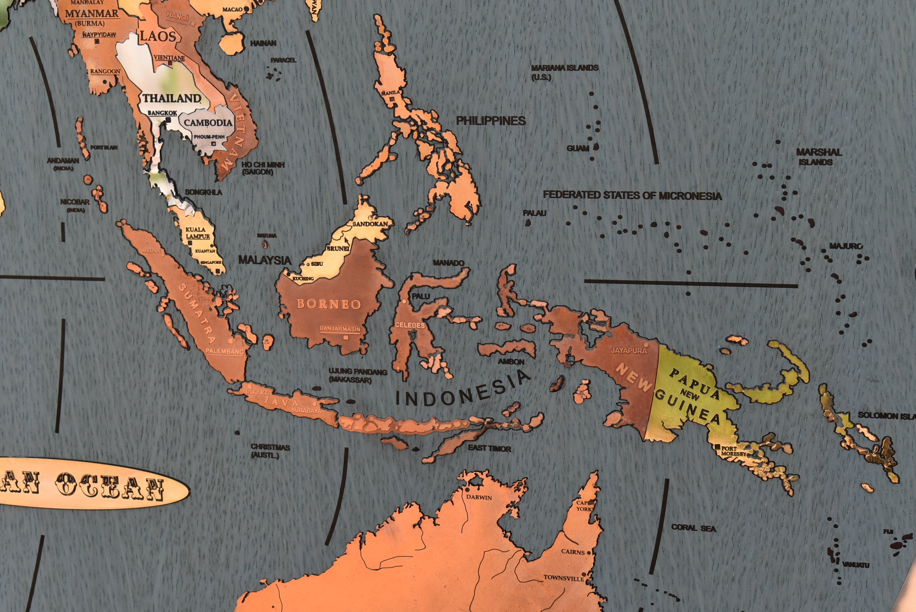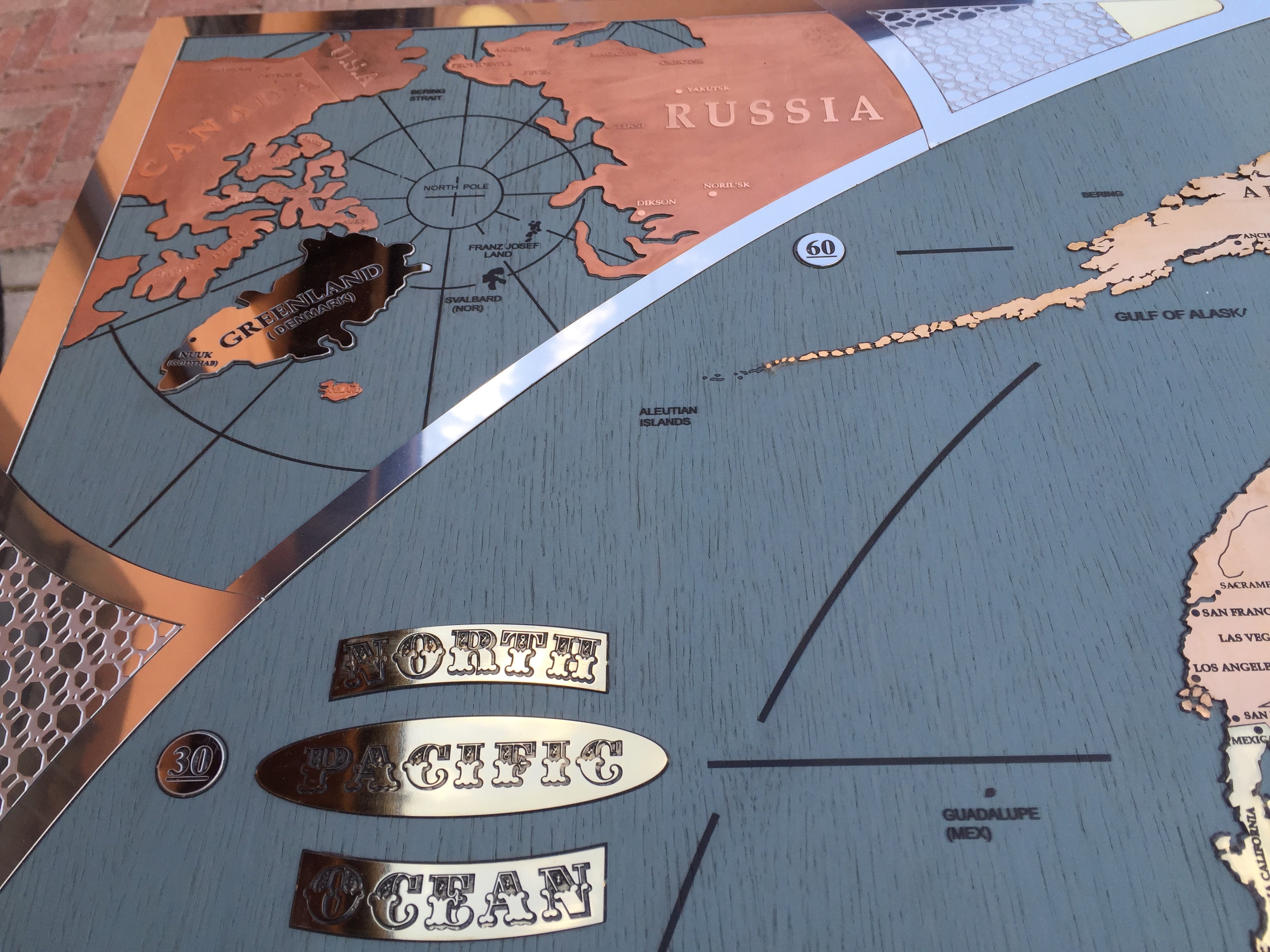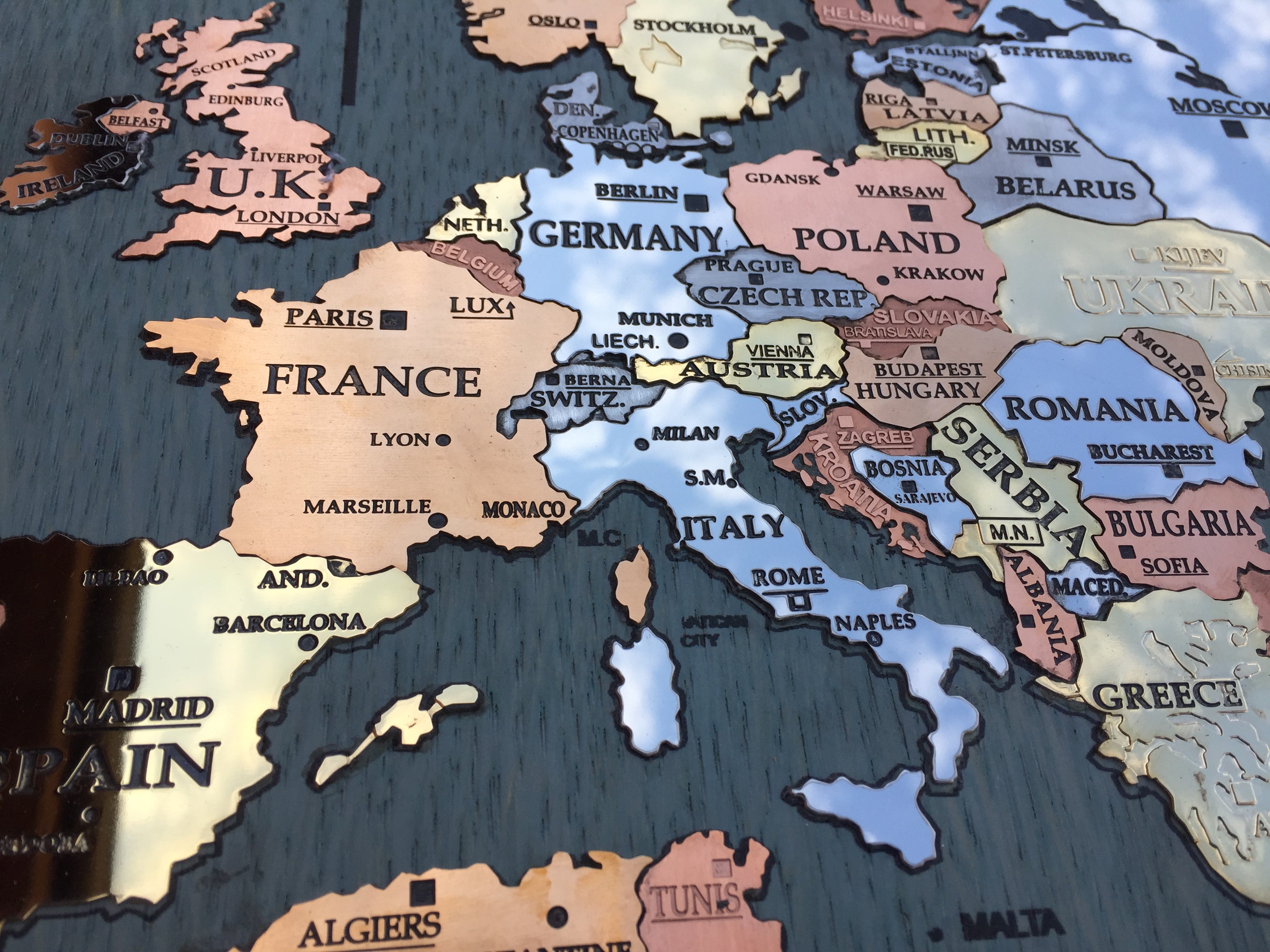 A good part of the around 450 metal inserts contains engraved writings, more than 400 writings are glazed by hand one by one inside engraving. Each nation is a different insert made with different metal as well as the most important islands and the poles too.