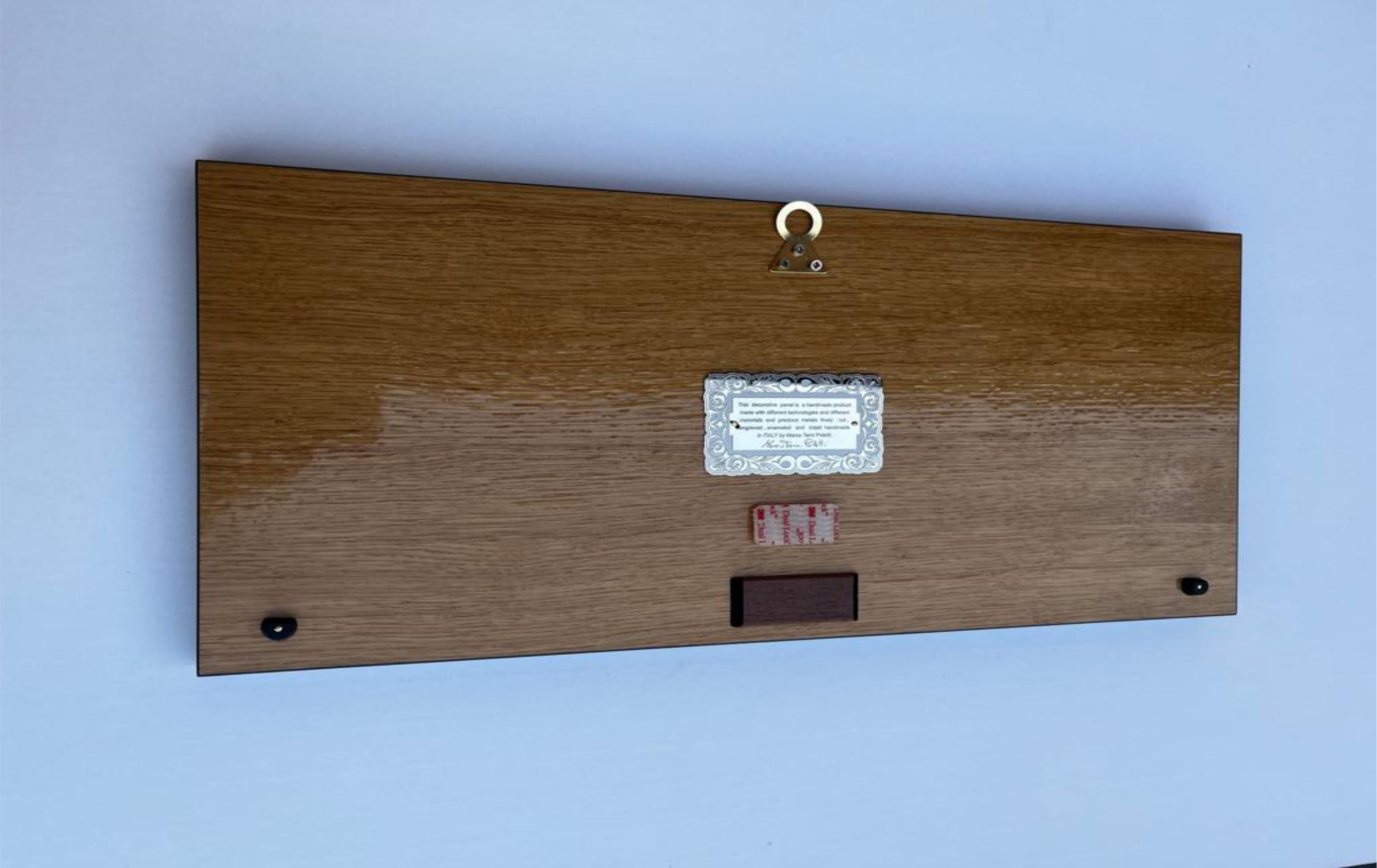 Panel size 58x28 cm and pen holder 17x12 cm ( or sizes on request).