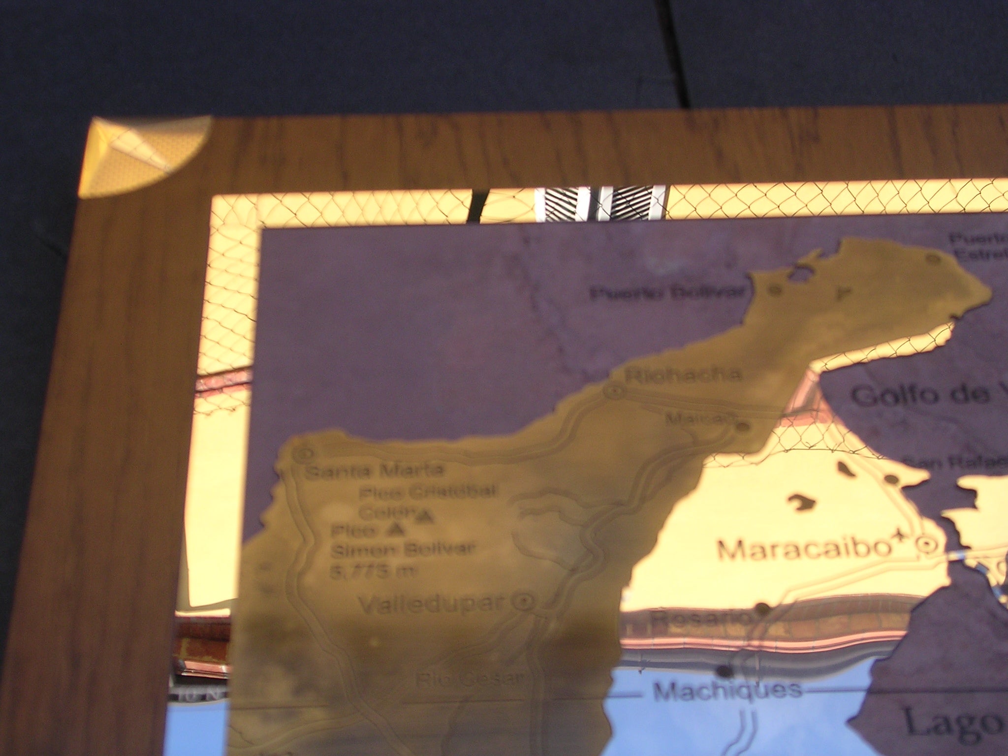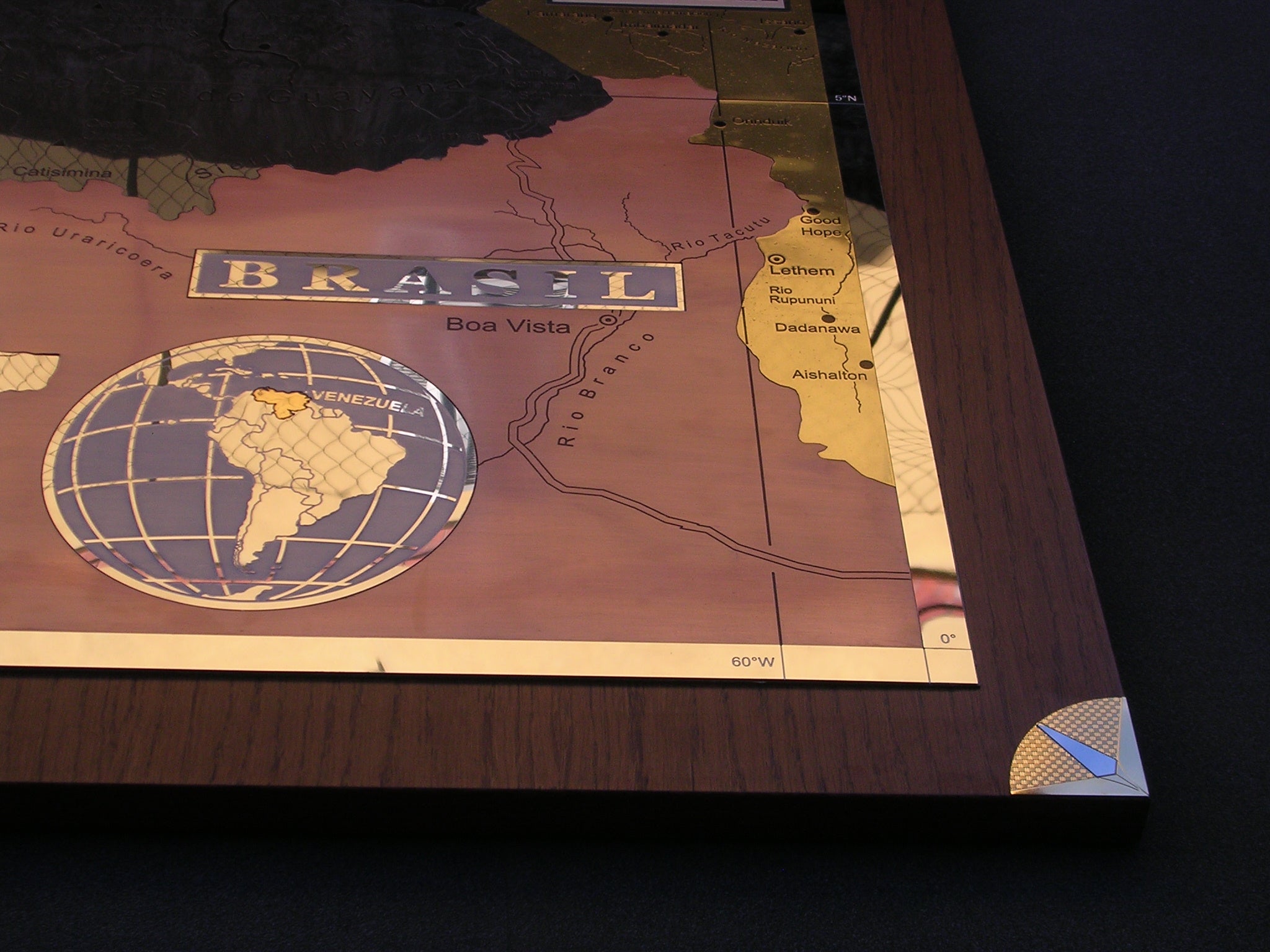 The perimetral frame is made with stainless steel engraved and contains the numbers of parallels and meridians and all the brass inserts are 24k gold finished.